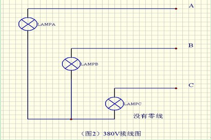 2、滑觸線電源指示燈在無零線的情況下,各指示燈的一端分別接電源A B C,另一端接在一起。這時請選用380V天車滑觸線電源指示燈。(如圖2)交流3000V同理。