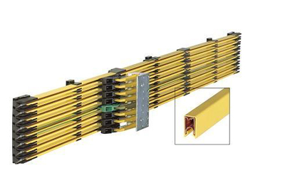 3、從軌道的一端開始安裝滑線導(dǎo)桿,盡可能使端部至第一根支架的距離為750㎜。