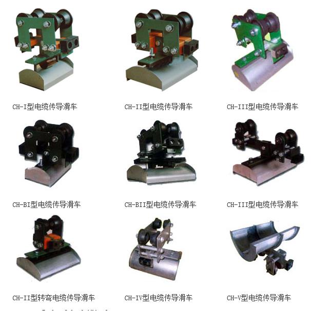 GHC型工字鋼電纜供電系列由牽收引滑車(chē)、電纜滑車(chē)、終端滑車(chē)三部分組成,牽引滑車(chē)跟隨移動(dòng)機(jī)械導(dǎo)纜(牽引)裝置,每個(gè)移動(dòng)機(jī)械配1個(gè),隨移動(dòng)機(jī)械往返運(yùn)行。中間電纜滑車(chē)將電纜懸掛在工字鋼軌道范圍內(nèi)隨牽引滑車(chē)移動(dòng),兩端并裝有緩沖撞頭,滑車(chē)視移動(dòng)長(zhǎng)度不同而定數(shù)量。終端滑車(chē)固定在工字鋼導(dǎo)軌末端,一般每個(gè)移動(dòng)機(jī)械設(shè)置1個(gè)。首端為電纜牽引車(chē),終端為固定掛線架,中間為電纜滑車(chē),該系列滑車(chē)分Ⅰ、Ⅱ、Ⅲ、Ⅳ、Ⅴ五種型號(hào),如用戶(hù)采用12#、14#、16#或更大號(hào)數(shù)工字鋼,可在訂貨時(shí)注明,本公司可成套供貨。