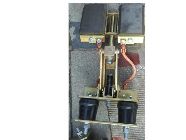 鋼體滑觸線(xiàn)集電器機(jī)械結(jié)構(gòu)的張力裝置決定集電刷與導(dǎo)軌的滑動(dòng)接觸壓力和機(jī)構(gòu)的穩(wěn)定性,集電刷則是導(dǎo)軌滑動(dòng)接觸拾取電能的導(dǎo)體,它的性能和導(dǎo)電質(zhì)量以及材料結(jié)構(gòu)成分的優(yōu)劣,將直接影響整個(gè)系統(tǒng)設(shè)備的安全運(yùn)行質(zhì)量。
