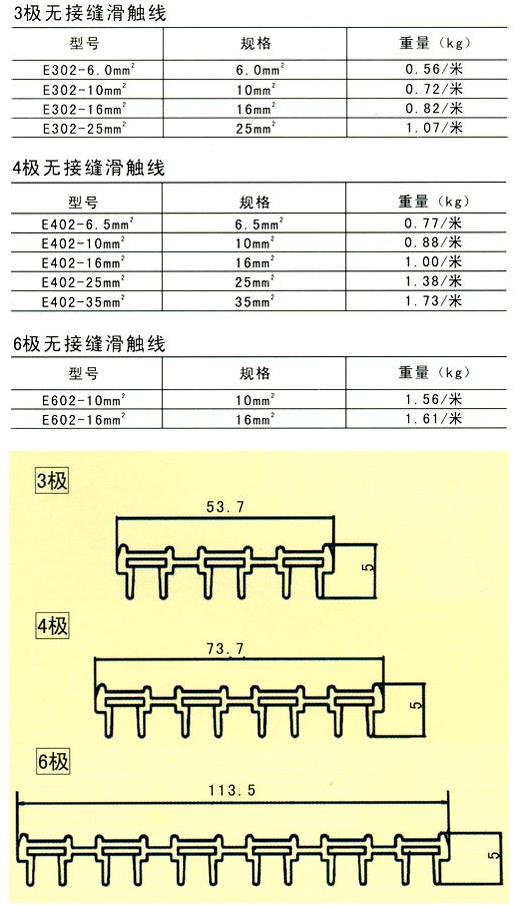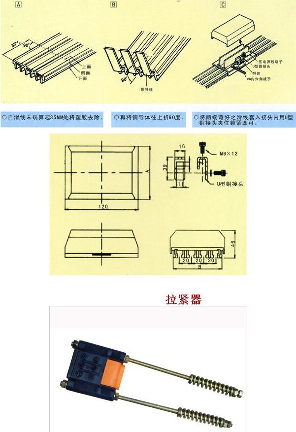 柔性一體式滑觸線是以無(wú)氧銅(導(dǎo)電率達(dá)99.99%)輸送電源、銅導(dǎo)體之厚度厚(一般標(biāo)準(zhǔn)厚為2.8m/m×10W)、壓降小、導(dǎo)電率倍佳;可根據(jù)用戶(hù)的車(chē)間長(zhǎng)度或用戶(hù)的需求來(lái)配一條以之相同長(zhǎng)度的安全電軌,使整個(gè)車(chē)間安全配電中間沒(méi)有任何接口,真正解決了國(guó)產(chǎn)滑觸線因接口多經(jīng)?ㄗ〖娝⒍斐啥搪坊虿荒苓\(yùn)行的問(wèn)題。并且適用于曲線、弧形及高低行走的設(shè)計(jì),并且安裝簡(jiǎn)便。從而使整套天車(chē)工程美觀、整潔又安全。產(chǎn)品有3P、 4P、 6P等規(guī)格,在自動(dòng)化生產(chǎn)的行列中,絕對(duì)是供電系統(tǒng)最佳的選擇。